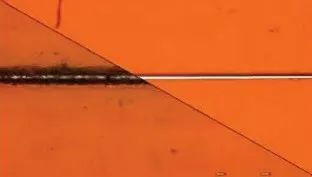 ▲CO?激光(左)與 UV 激光(右)的切割槽比較